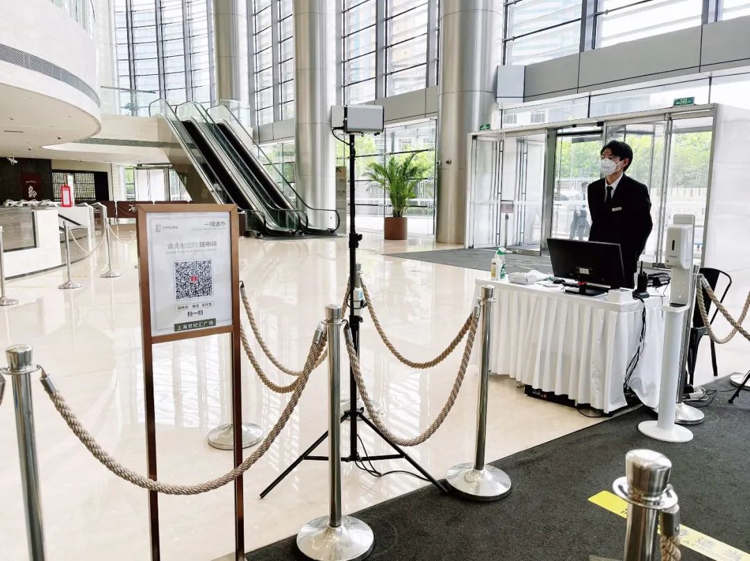 工區(qū)大樓布設(shè)健康核驗(yàn)一體機(jī)“數(shù)字哨兵”,各人員有序掃碼核驗(yàn)入場(chǎng)。