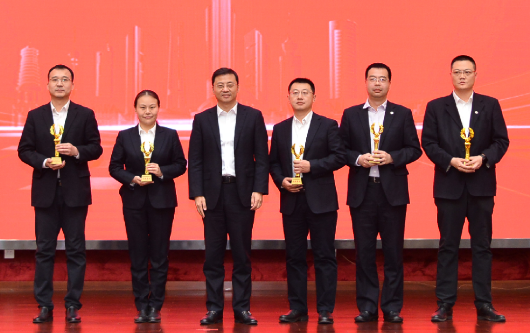 ▲總裁楊應(yīng)群(右三)為21位先進(jìn)個(gè)人頒獎(jiǎng)