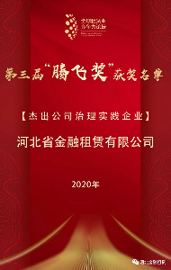 ▲公司總裁楊應群(左一)代表公司領獎全球租賃業競爭力論壇峰會11月4日至5日在天津舉行,近千位國內外融資租賃行業嘉賓齊聚一堂,匯智論道,“聚焦雙循環,謀新十四五”。本次峰會同時頒發第三屆中國融資租賃“騰飛獎”,河北省金融租賃有…